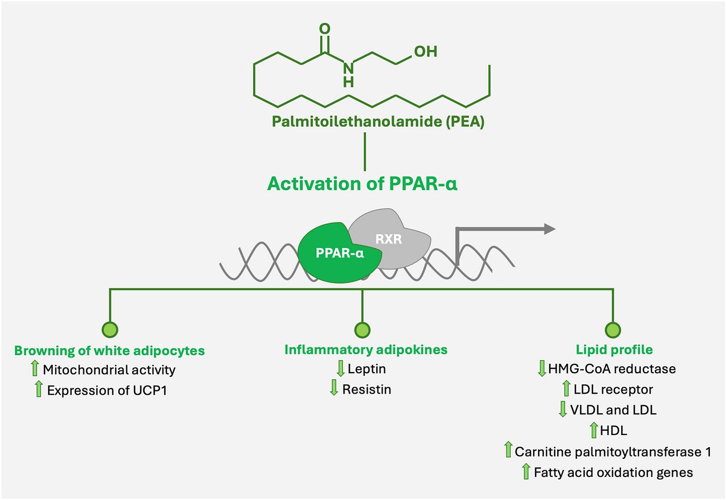 PEA binds and activates PPAR-α.